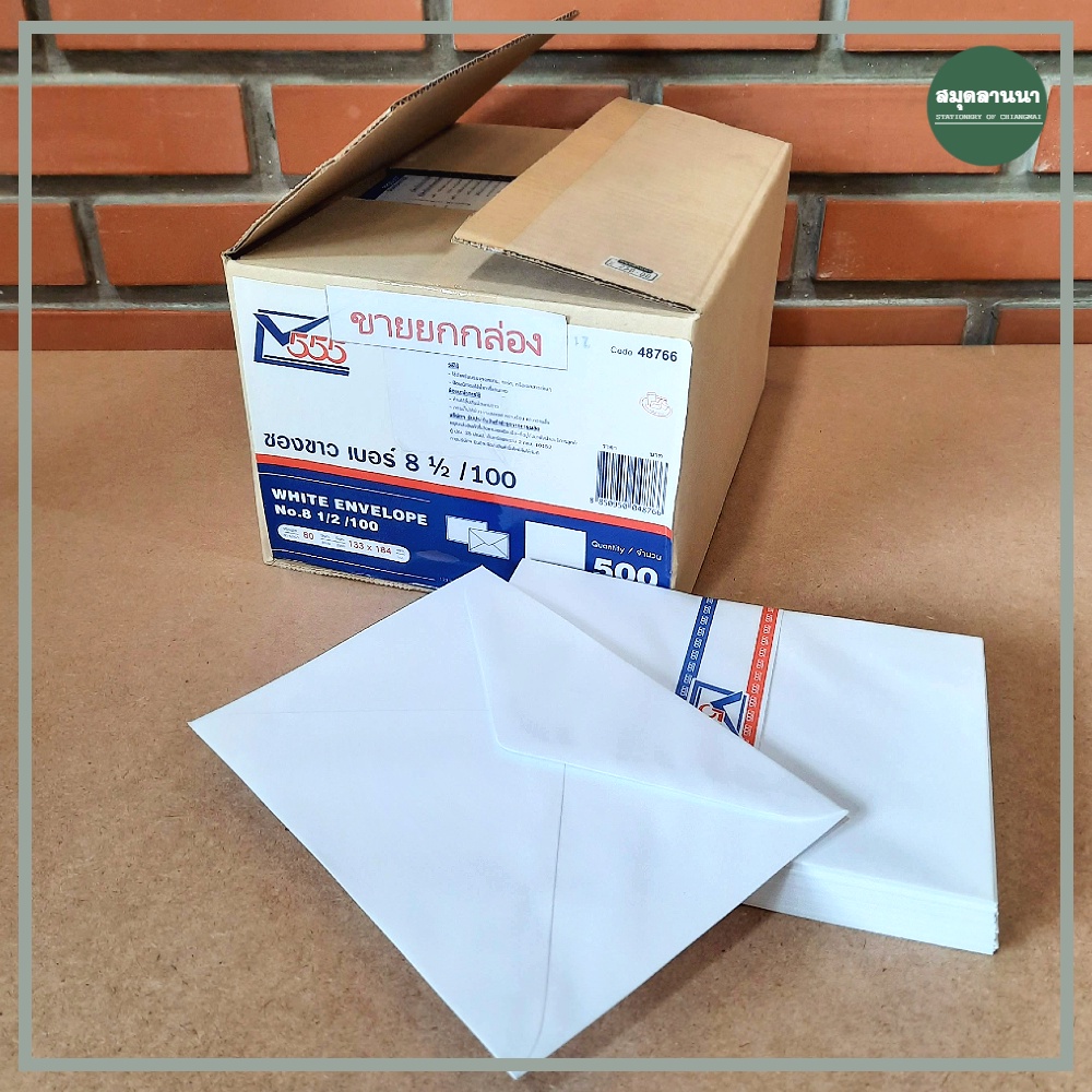 [ขายยกกล่อง] 📦 ซองขาว เบอร์ 8 1/2 ฝาสามเหลี่ยม กล่อง 500 ซอง