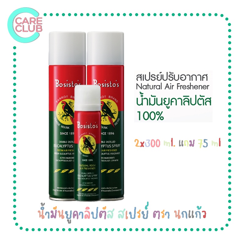 สเปรย์ปรับอากาศยูคาลิปตัส “โบสิสโต” ตรานกแก้ว (Bosisto’s Eucalyptus Spray) มี 3 ขนาด 150ml./300ml. และ2x300ml.แถม75ml.