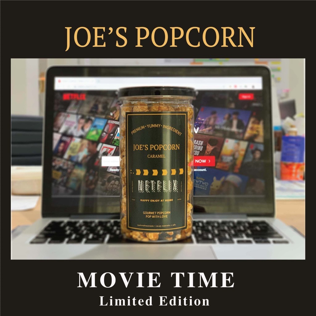 โจป๊อปคอร์น Joe’s Popcorn รุ่นโจมูฟวี่ (JOE Movie Time ) ข้าวโพดอบกรอบ แบบกระปุก 125 กรัม รสอัลมอลคาราเมล