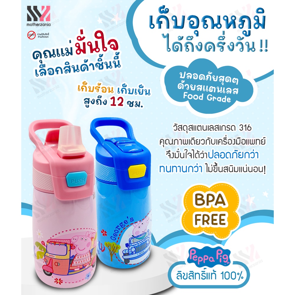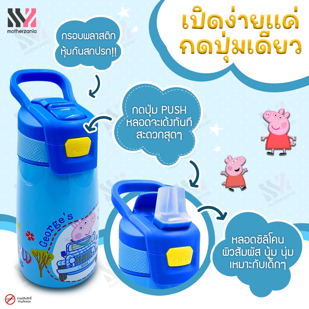 (STSB) กระบอกน้ำสแตนเลส หลอดดูดในตัว BPA FREE เก็บอุณหภูมิร้อน-เย็น ลิขสิทธิ์แท้ ลาย Peppa Pig กระติกน้ำเด็ก ขวดน้ำเด็ก