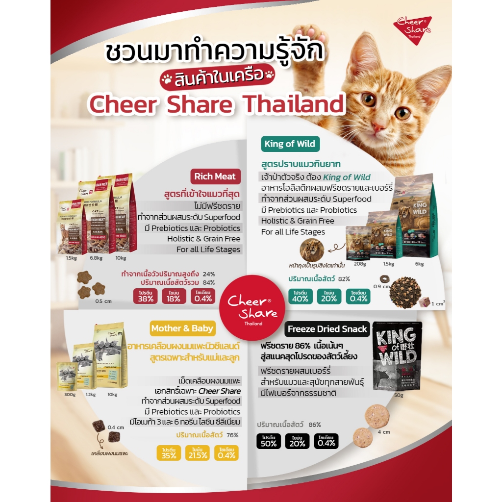 (1.2-1.5kg) CheerShare อาหารแมว สูตรฟรีซดราย King of Wild หรือสูตร Rich Meat Mother & baby Cat