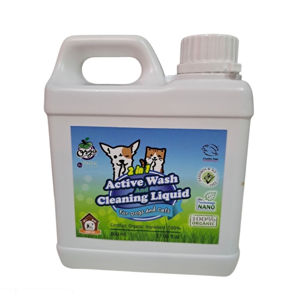 Orga Organic Pets ACTIVE WASH น้ำยาซักผ้า ขัด ล้าง ทำความสะอาด ขนาด 800 ml. ผลิตภัณฑ์ทำความสะอาด ขจัดคราบสกปรก ดับกลิ่น