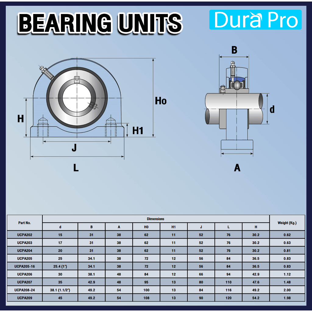 UCPA202 UCPA203 UCPA204 UCPA205 UCPA205-16 LDK ตลับลูกปืนตุ๊กตา ( BEARING UNITS ) UC + PA = UCPA โดย Dura Pro