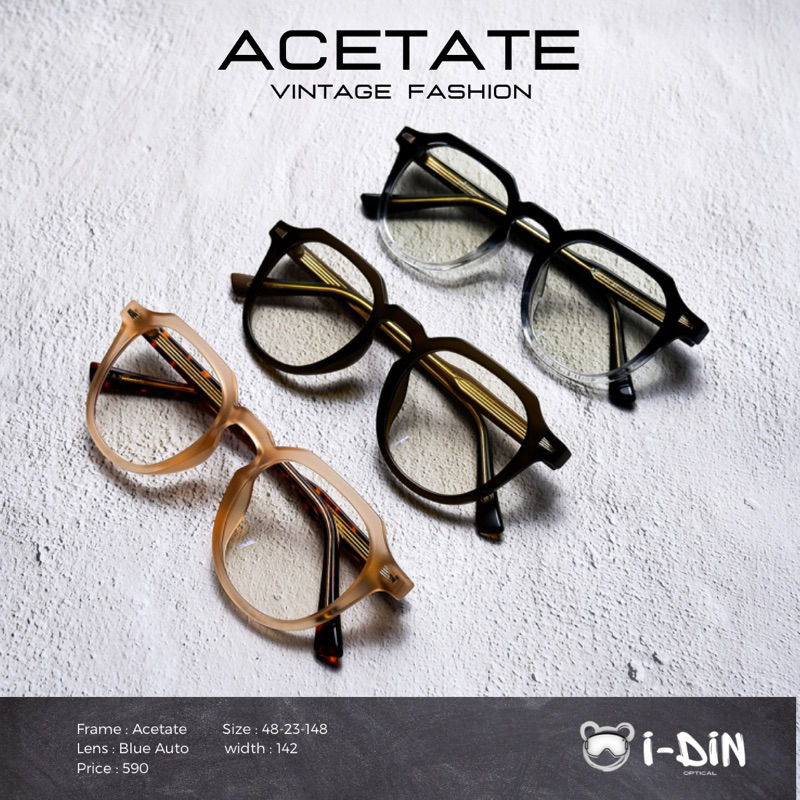 กรอบแว่นตาอะซิเตท (Acetate) แข็งแรง, ทนทาน, สีไม่ลอก มีบริการตัดเลนส์สายตา แว่นวินเทจ/แว่นกรองแสงสีฟ้า/แว่นบลูออโต้ 5280