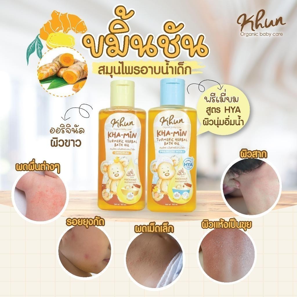 Khun ขมิ้นออยล์ สมุนไพรอาบน้ำเด็ก ขมิ้นอาบน้ำเด็ก ออร์แกนิค ใช้ง่าย บำรุงผิวชุ่มชื้น ขาวสว่างใส ใช้ได้ตั้งแต่แรกเกิด