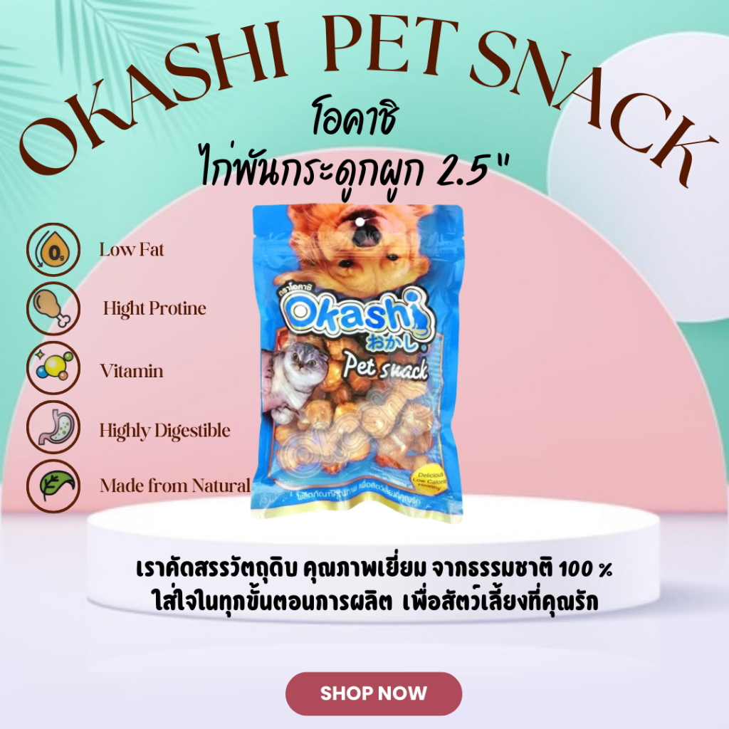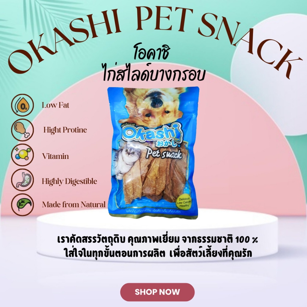 OKASHI SNACK DOG AND CAT ขนมขบเคี้ยวสำหรับสุนัขและแมว (สินค้าแนะนำซองฟ้า)