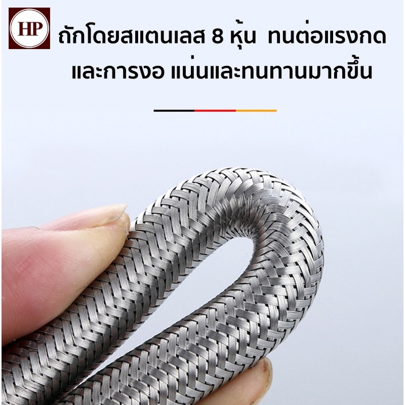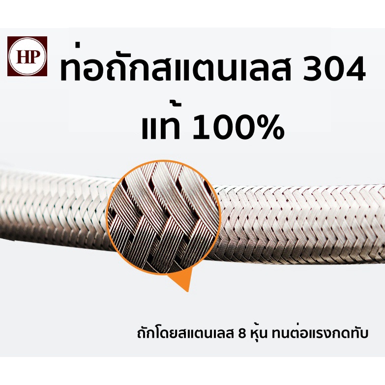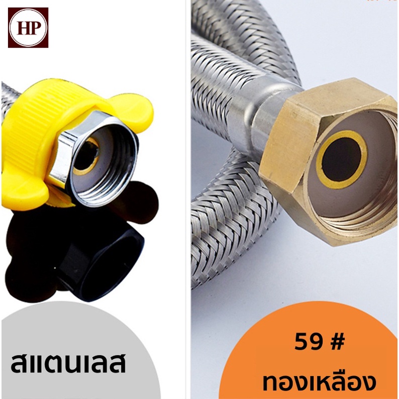 🔥 H Power 🔥 สายน้ำดี น็อตทองเหลือง ท่อถักสแตนเลส 304 แท้ 100% ไม่เป็นสนิม ทนต่ออุณหภูมิความร้อน 40ซม-200ซม HP-004 👍👍Fla