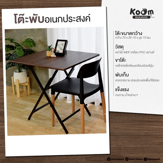 KOOM Square โต๊ะพับสี่เหลี่ยม นั่งทานอาหารได้ #PT-7073HSS สี Oak