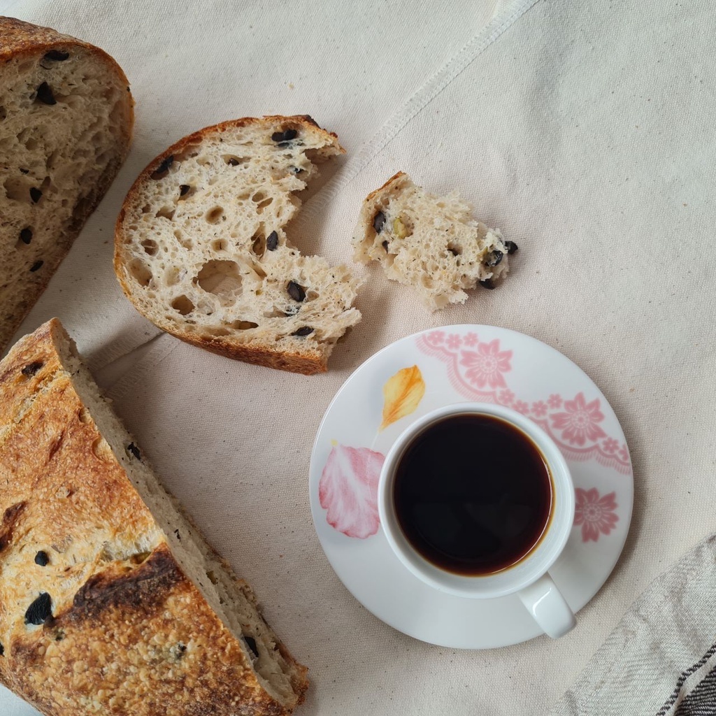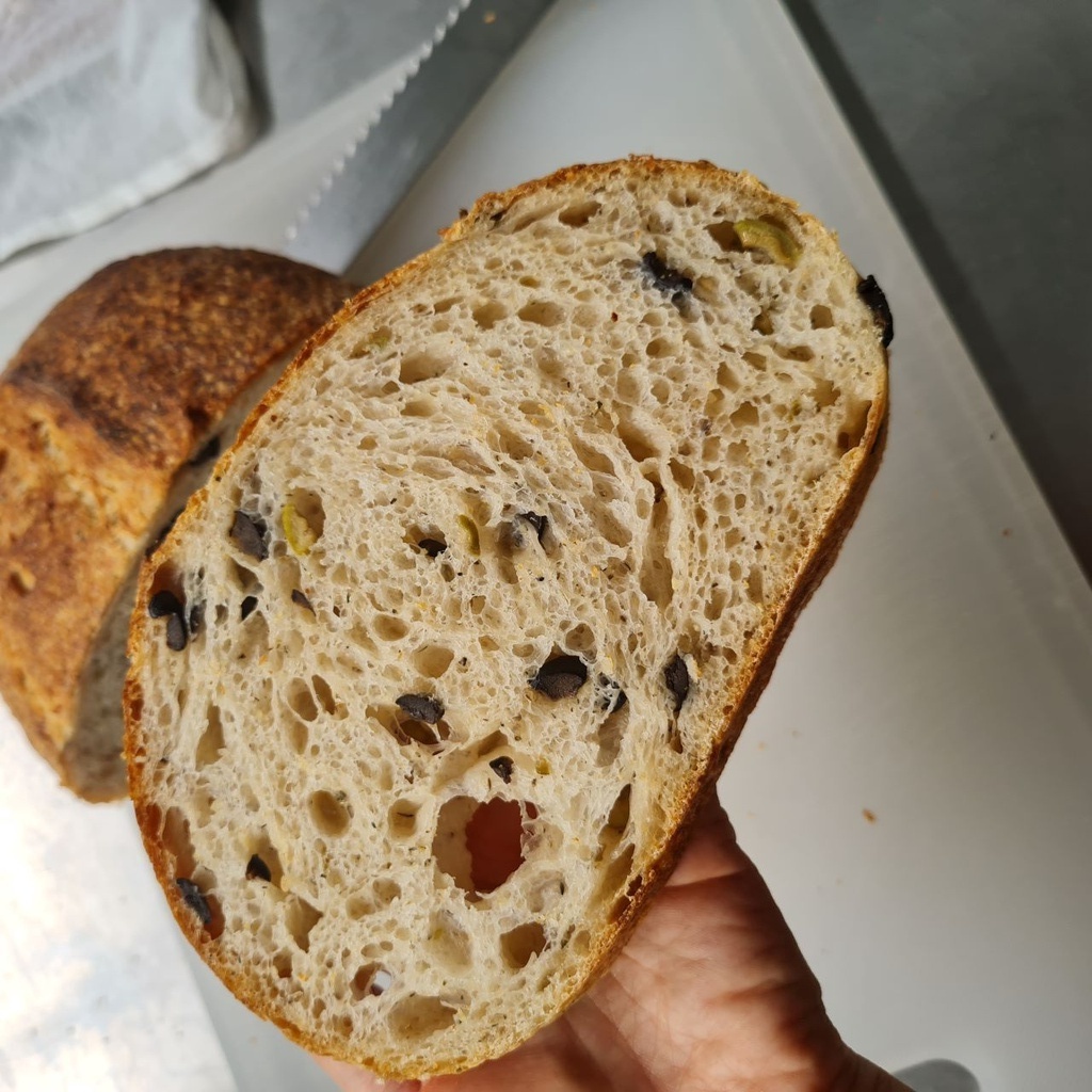 [เจ/วีแกน] Olive Sourdough (vegan) : ซาวเออร์โดว์มะกอกเขียวและมะกอกดำ วีแกน