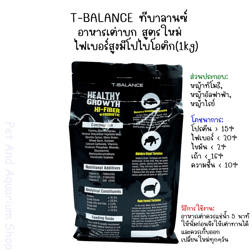 อาหารเต่าบก ทีบาลานซ์ สูตรใหม่ไฟเบอร์สูง มีโปไบโอติก (1kg) T-balance