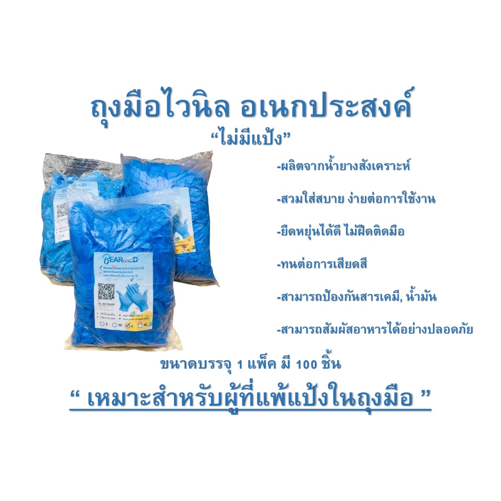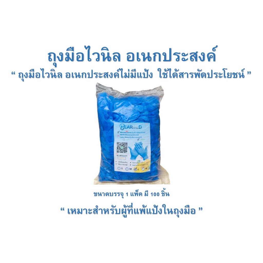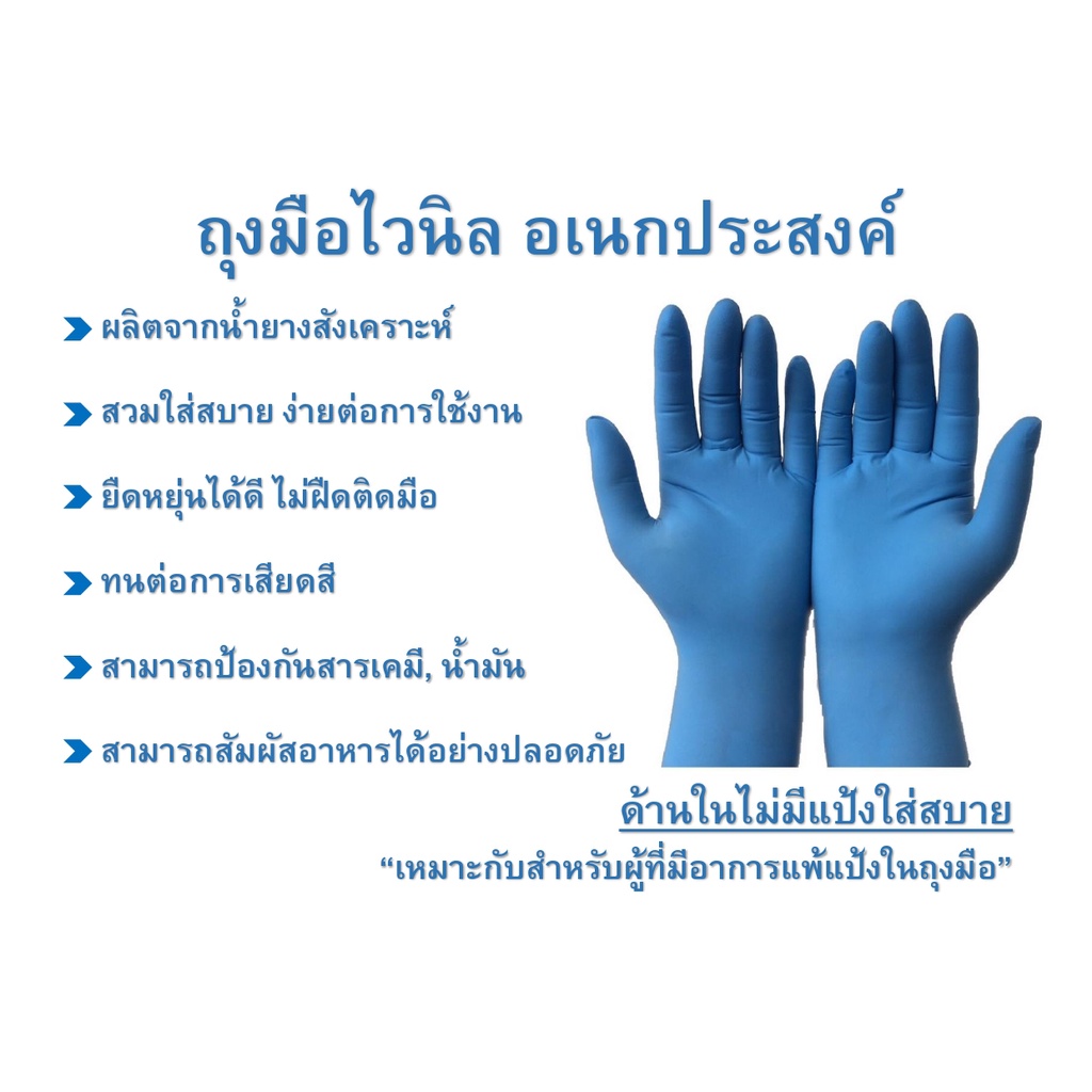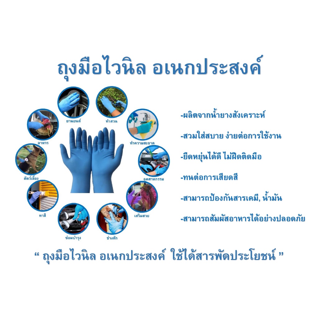 ถุงมือยางไวนิลผสมไนไตร เอนกประสงค์/ สีฟ้า แบบแพ็ค/แพ็คละ100 ชิ้น ป้องกันเชื้อโรค ใช้งานสวน งานครัว