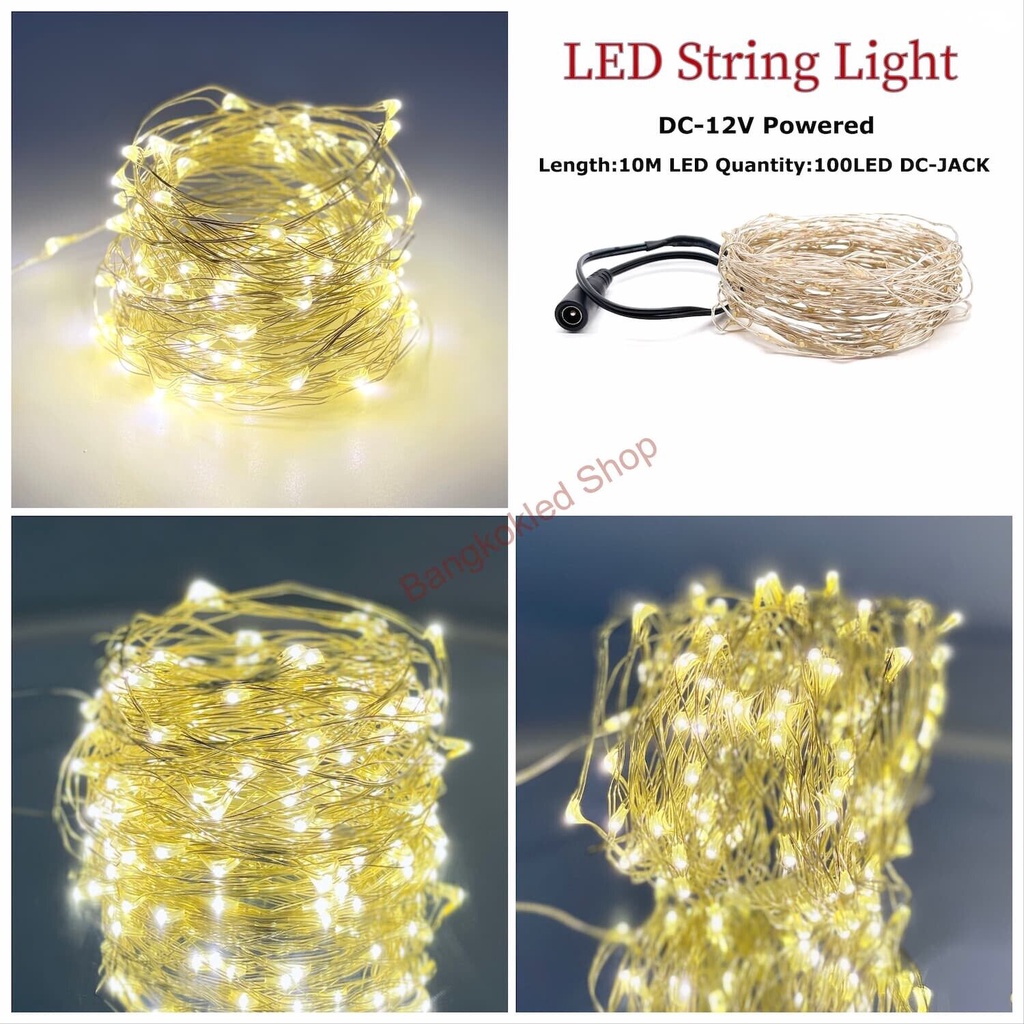 ไฟเม็ดข้าว, ไฟหยดน้ำ 10M 12V LED เส้นลวด 10M 100LED แบบต่อสายแจ็ค ไฟเส้นลวด LED ประดับห้อง ตกแต่งงาน