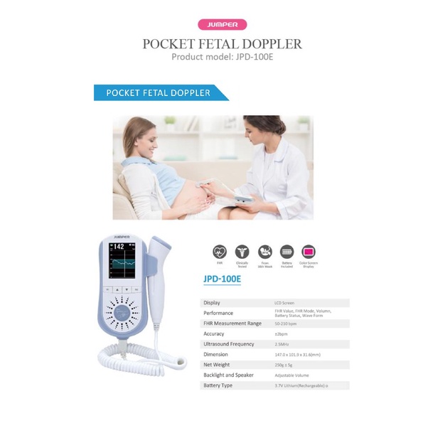 เครื่องฟังเสียงหัวใจทารกในครรภ์ ดิจิตอล รุ่นใหม่ล่าสุด ยี่ห้อ Jumper รุ่น JPD-100E Pocket Fetal Doppler