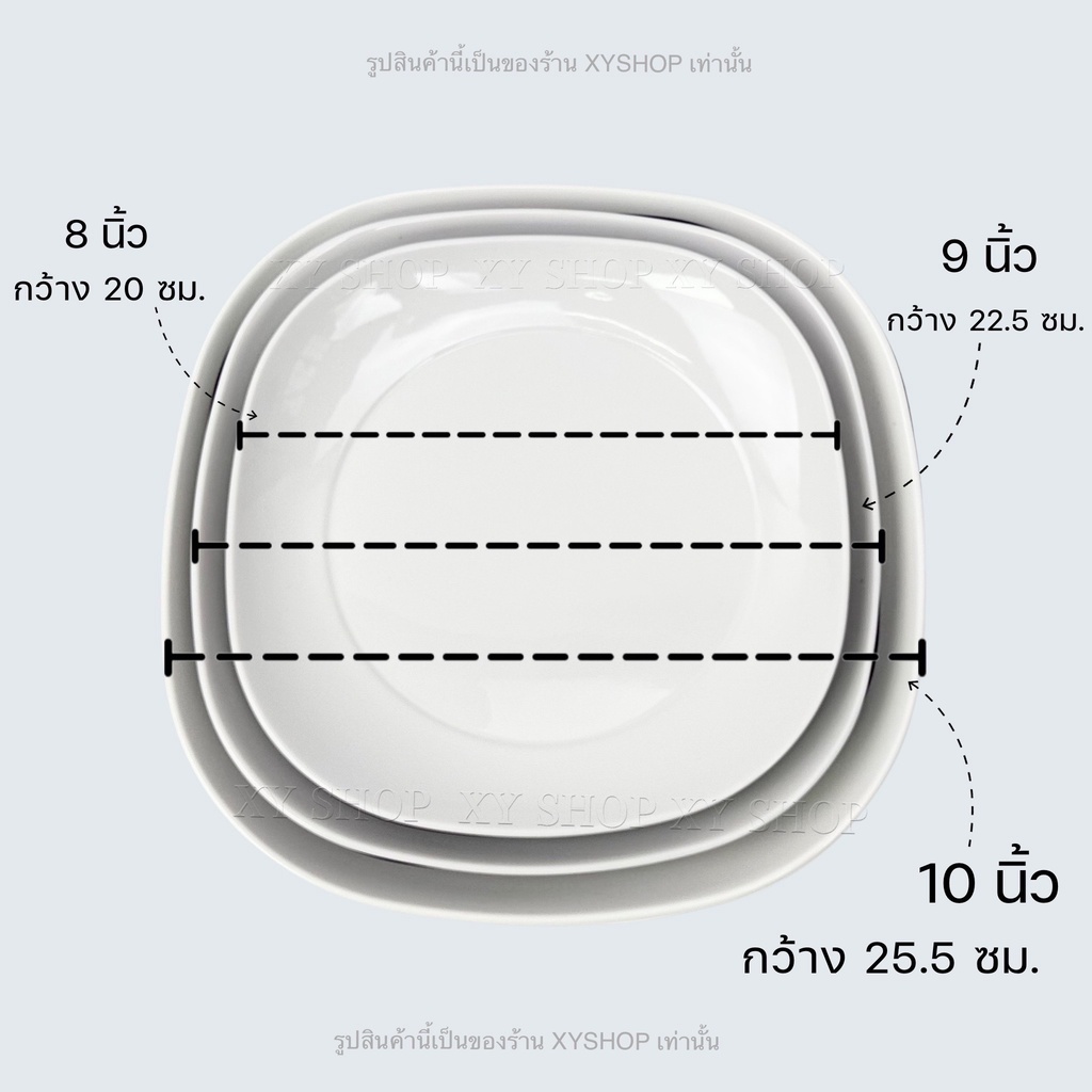 จานสี่เหลี่ยม'มุมมน' เมลามีน | 8 นิ้ว , 9 นิ้ว , 10 นิ้ว | สี: ขาว,ดำ | จำหน่าย... 1 ใบ