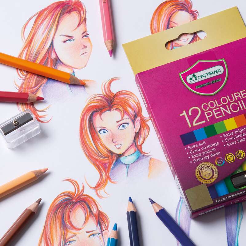 Master Art สีไม้ 12 สี รุ่นใหม่ (แท่งสั้น) พกพาสะดวก - 1 กล่อง