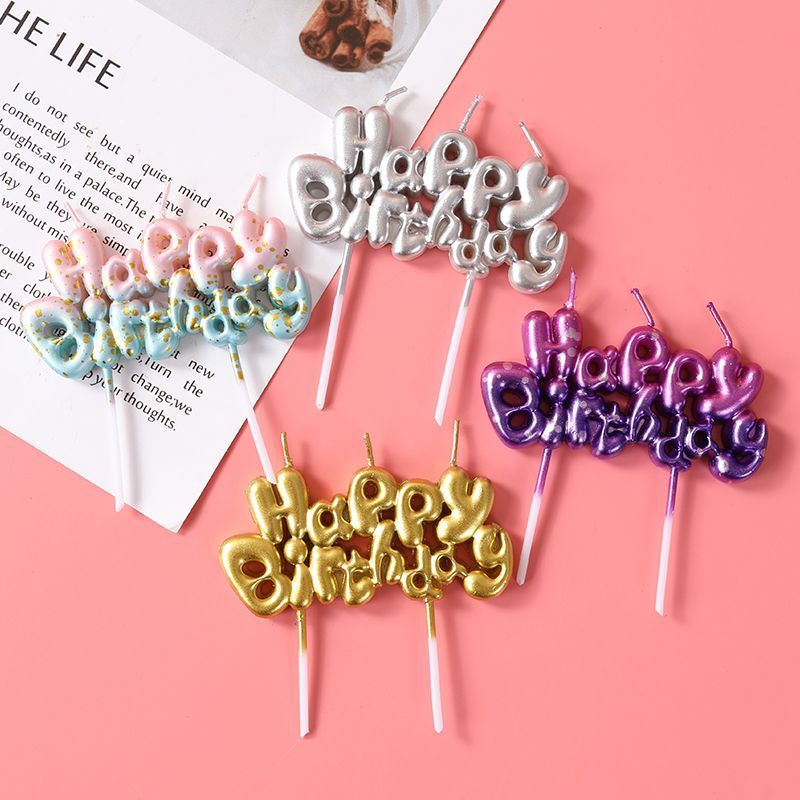 เทียนวันเกิด Happy Birthday เทียนLOVE สีพิเศษ(พร้อมส่ง)