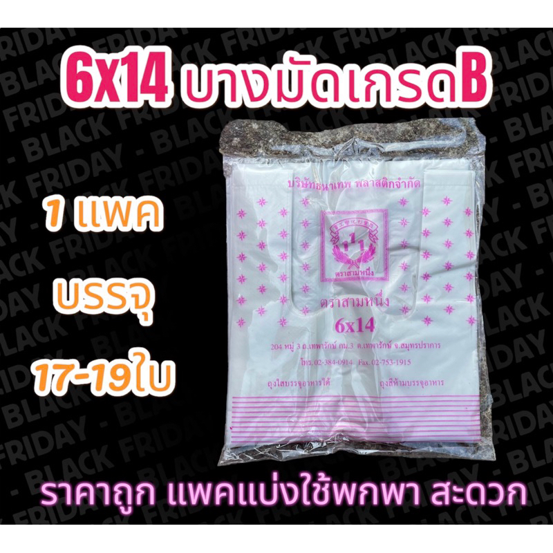 ถุงหูหิ้ว6x14 เกรดB(ยกมัด 10แพค)ตราสามหนึ่ง แบบประหยัด รักษ์โลก ถูกๆ
