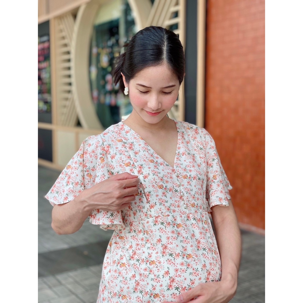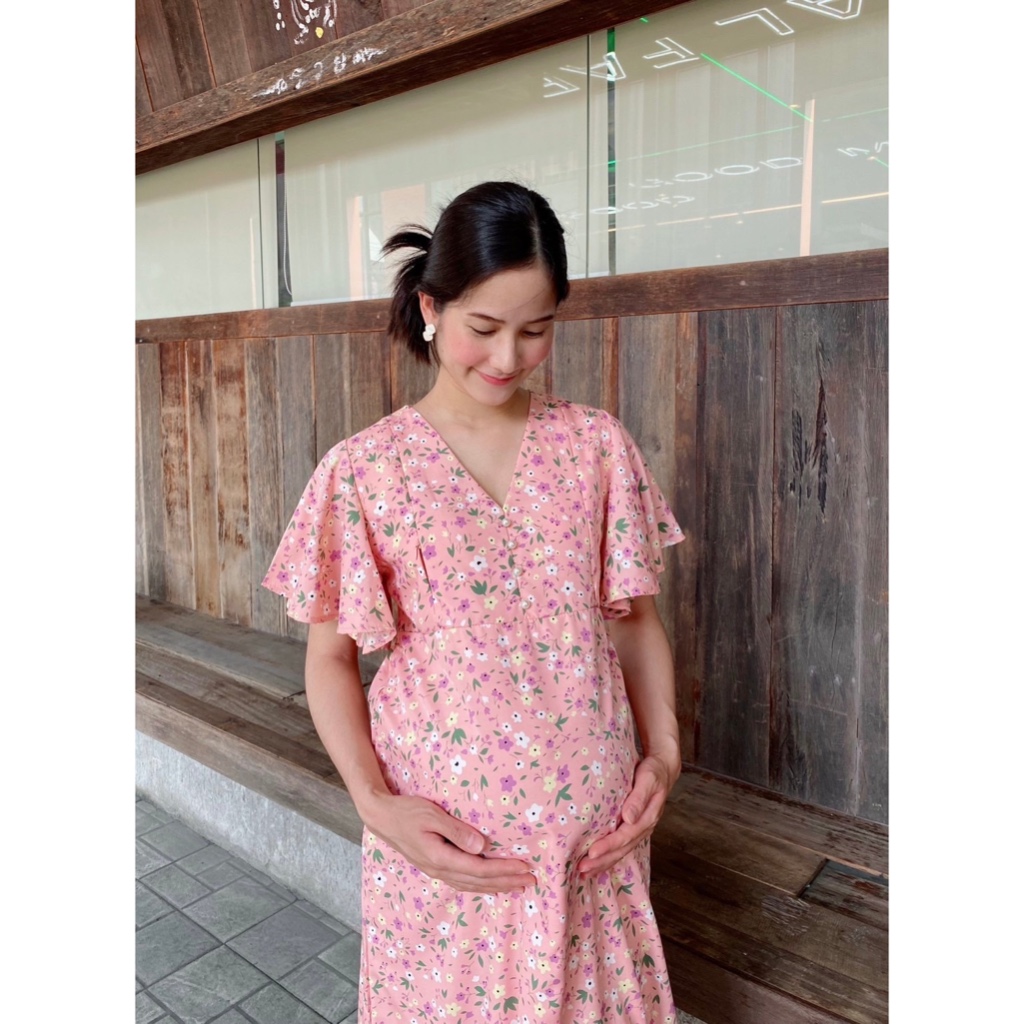 ( ไม่ต้องรีด + มีซับใน + ให้นมได้ ) ชุดเดรสคลุมท้อผ้าไหมอิตาลี BD1062