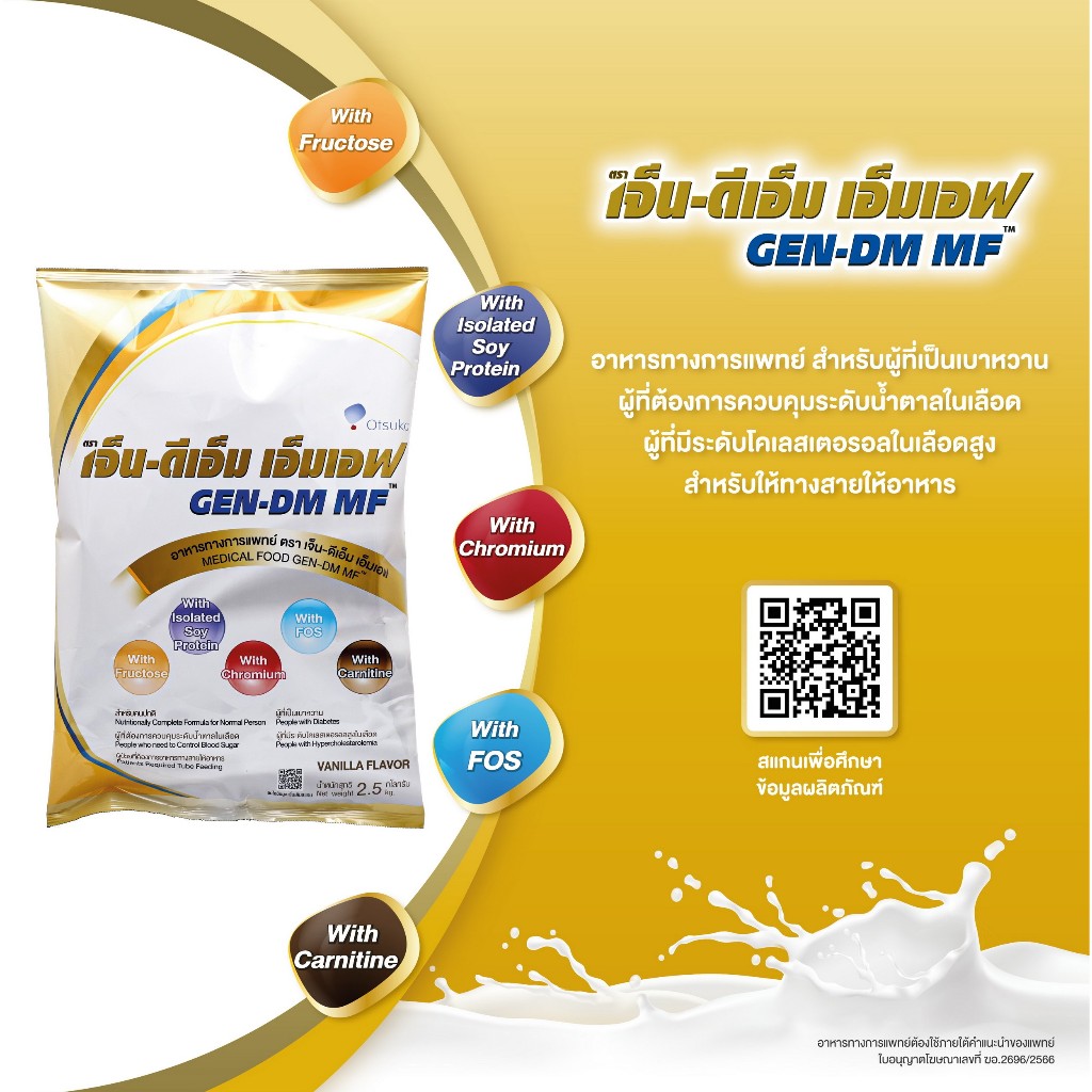 GEN-DM MF Vanilla Flavor เจ็น-ดีเอ็ม เอ็มเอฟ กลิ่นวานิลลา 2.5 ก.ก. ชนิดผงสำหรับผู้ให้อาหารทางสายให้อาหาร (4 ถุง ยกลัง)