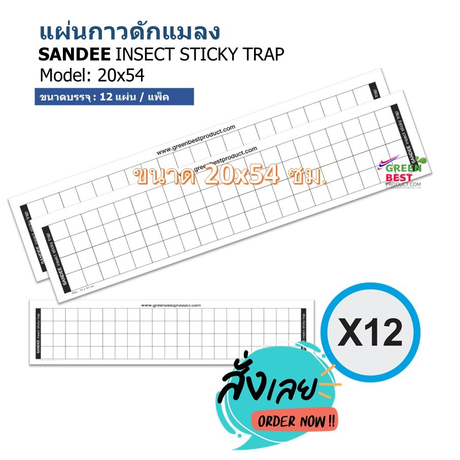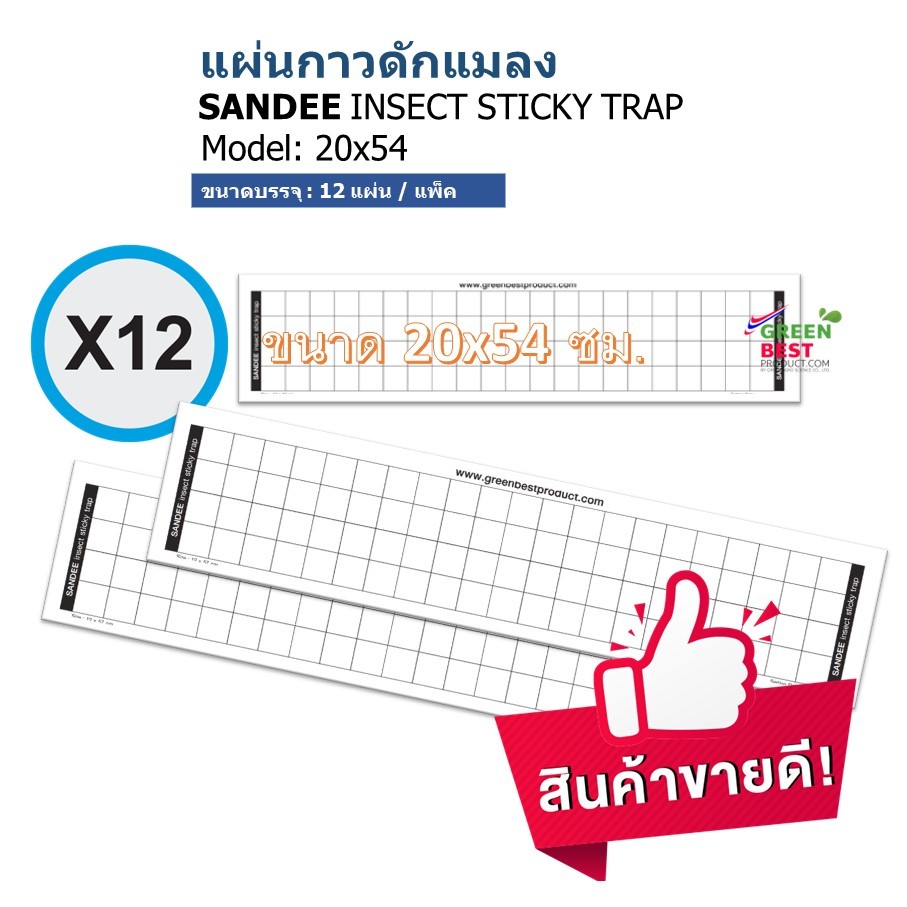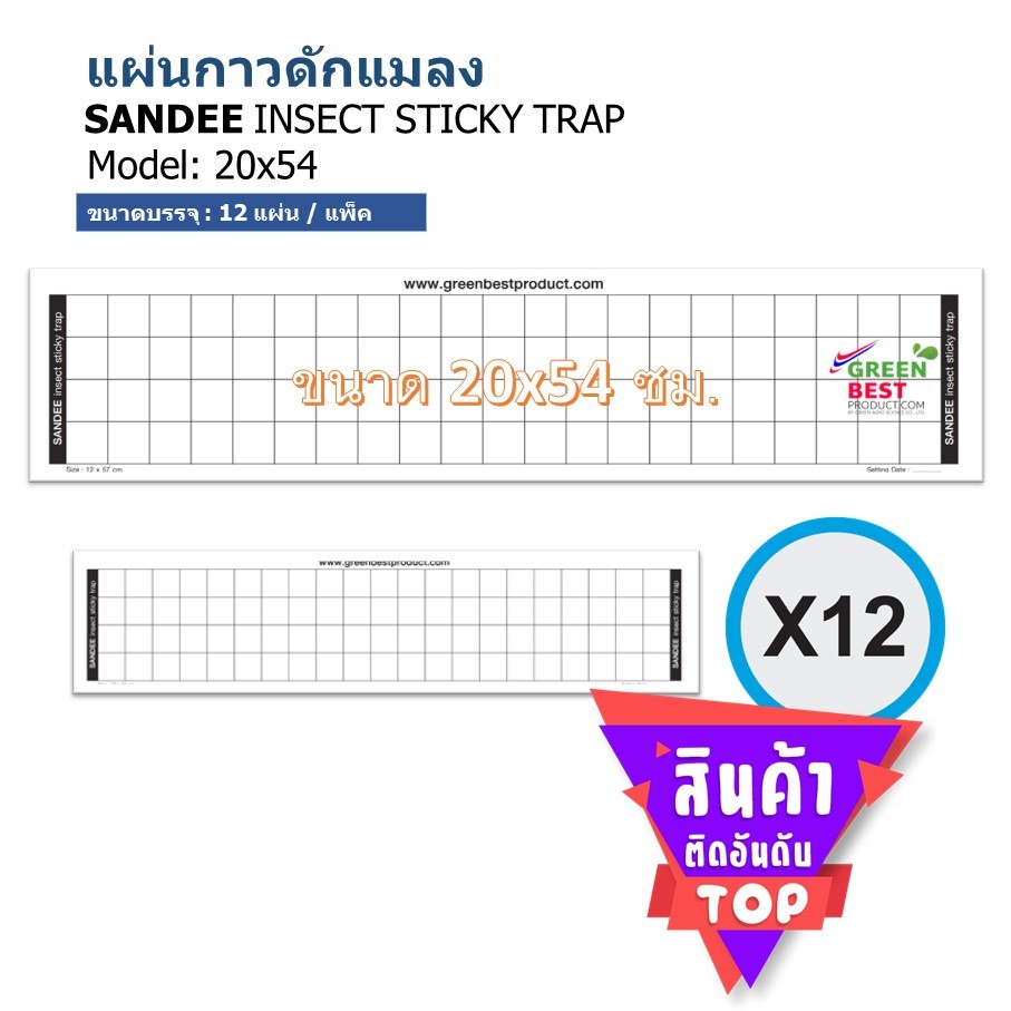 แผ่นกาวดักแมลง SANDEE INSECT STICKY TRAP model 20x54 cm.
