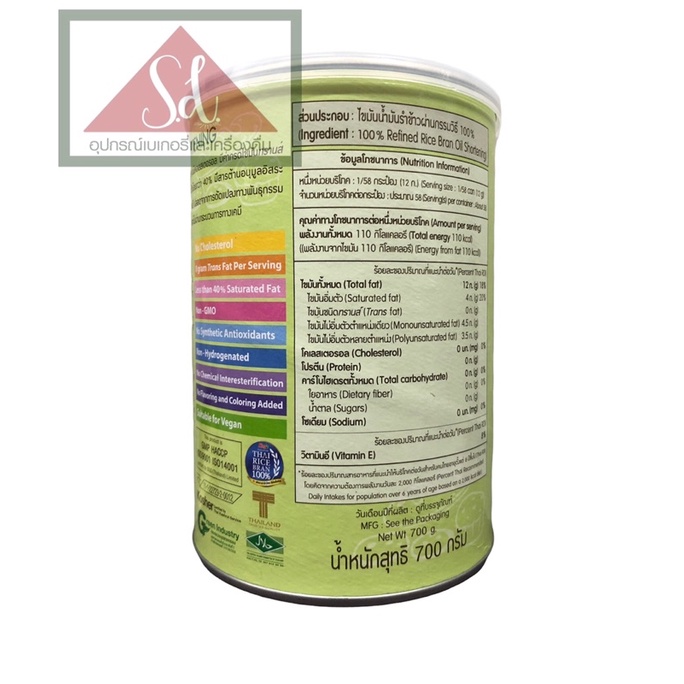 King ชอร์ตเทนนิ่ง น้ำมันรำข้าว ขนาด 700 กรัม