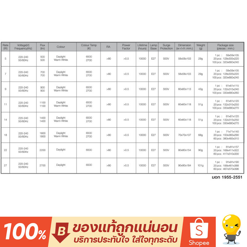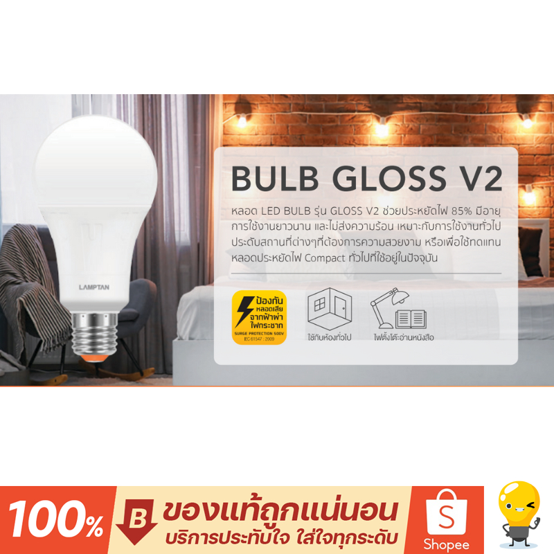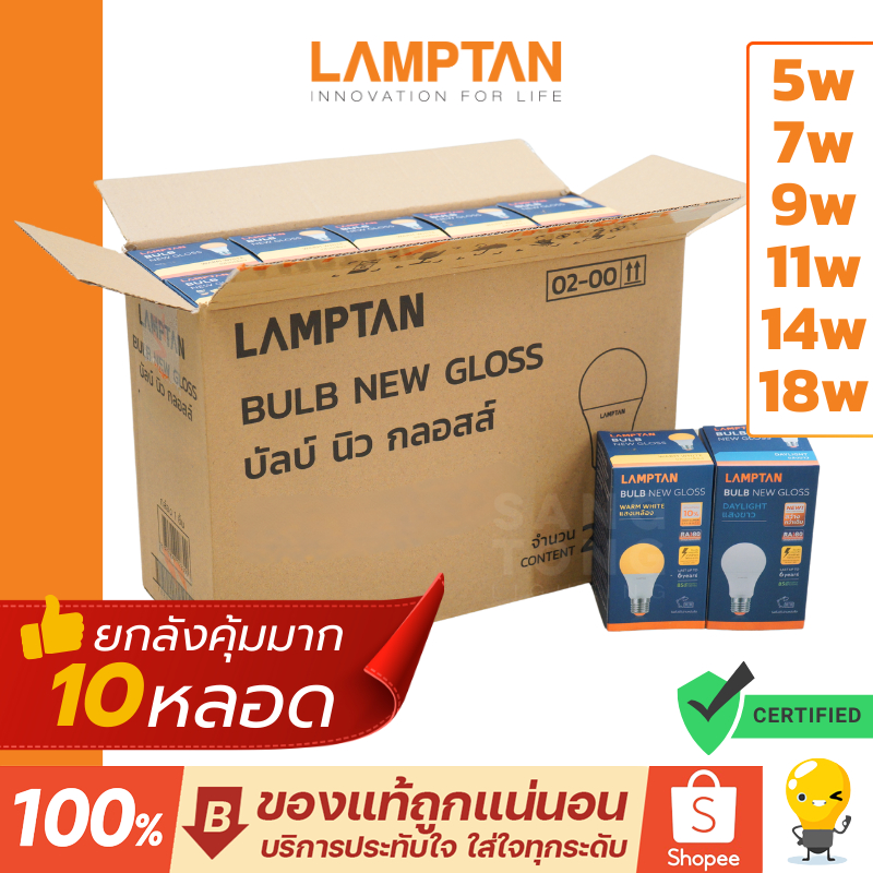 Lamptan (ลัง10หลอด) หลอด LED 5w 7w 9w 11w 14w 18w รุ่น Gloss V2 หลอดไฟ ของแท้ ราคารวมแวท