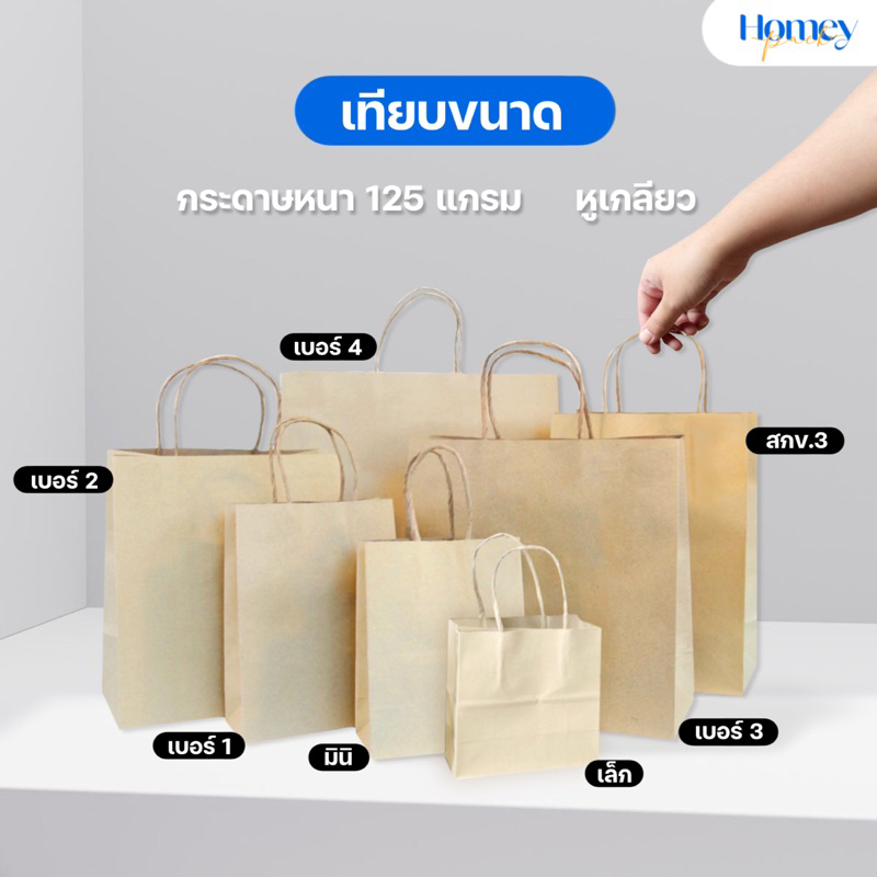 ถุงกระดาษหูหิ้ว ถุงส่งของ (แพ็ค10ใบ) หนา 125 แกรม คุณภาพดี