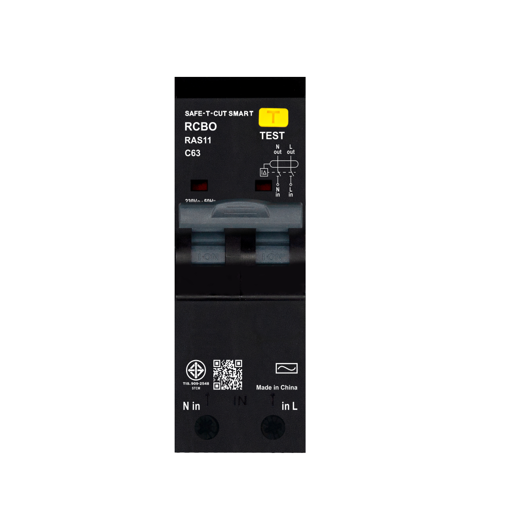 อุปกรณ์ RCBO 2P - Type AC รุ่น RAS11 (ควบคุมกระแสไฟเกินทั้งขั้ว LและN) 30mA แบบ USA (ปลั๊กอิน) : เซฟทีคัท สมาร์ท