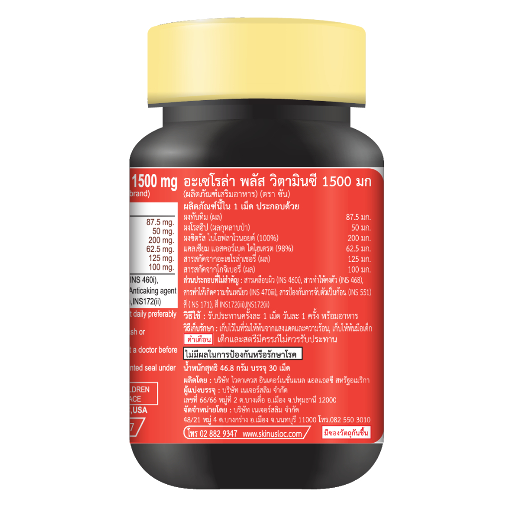 Vitamate Acerola Plus Vitamin C 1500 mg ไวตาเมท อะเซโรล่า พลัส วิตามินซี 1500 มก