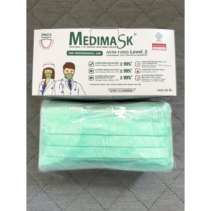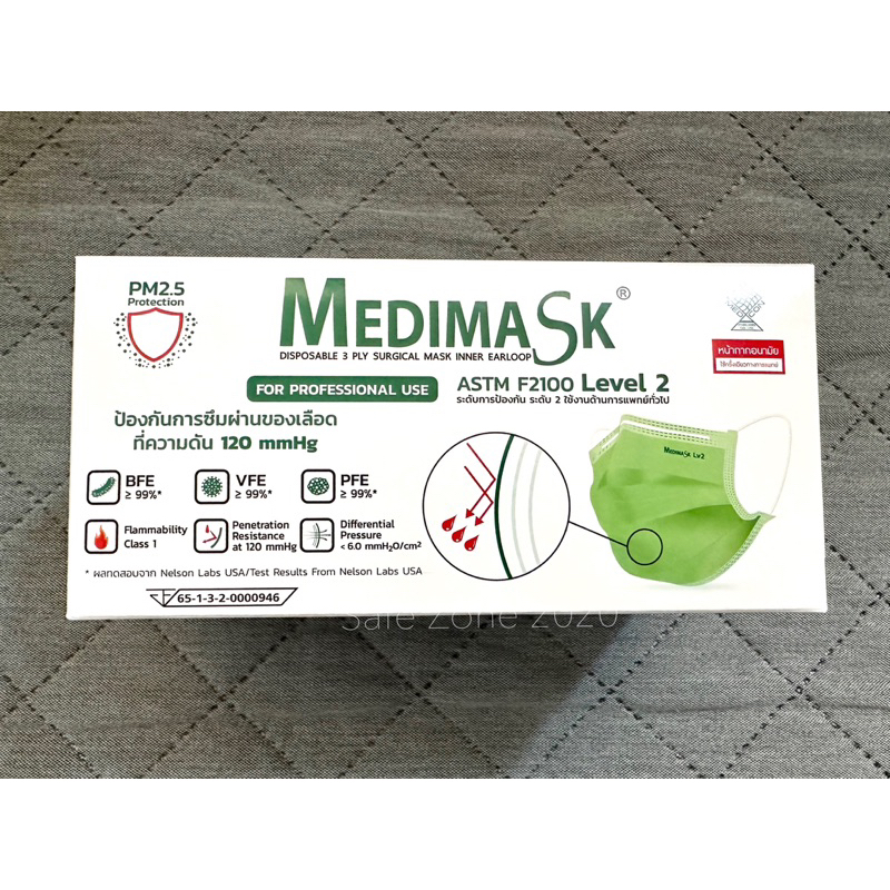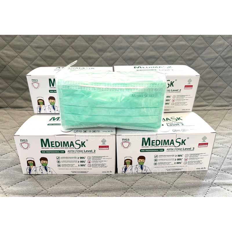 ‼️พร้อมส่ง‼️ หน้ากากอนามัย Medimask ASTM F2100 Level 2 เกรดการแพทย์🔺สีเขียว🔺 50 ชิ้น/กล่อง