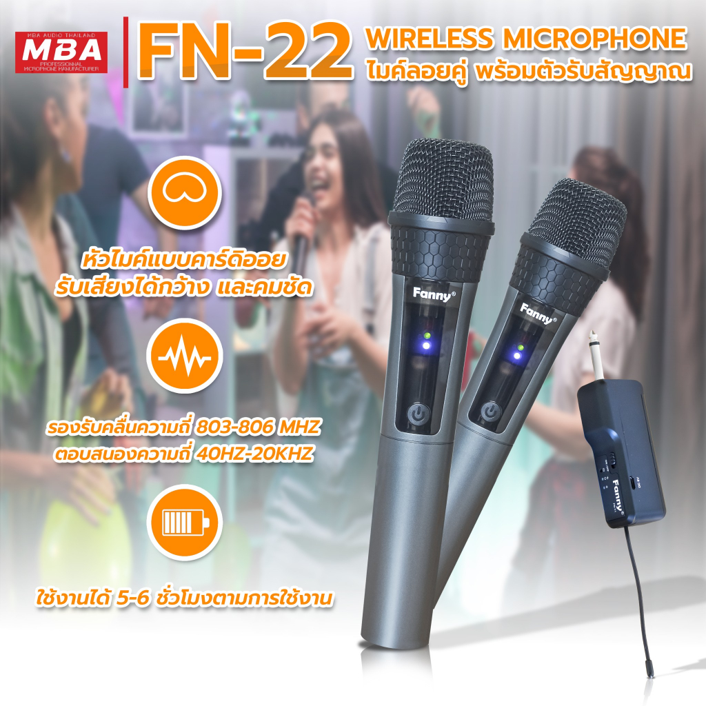 MBAAUDIOTHAILAND ไมค์ลอยคู่และไมค์ลอยเดี่ยวไมโครโฟนไร้สาย ปรับคลื่นความถี่ได้ ไมค์ดูดเสียงดีไม่หอน ไมค์ร้องเพลงคาราโอเกะ