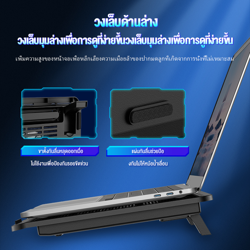 OLYPS Notebook Cooling Pad ที่วางโน้ตบุ้ค 14 นิ้ว พัดลมระบายความร้อน สียงเงียบ พอร์ต USB พัดลมโน๊ตบุ๊ค laptop cooler