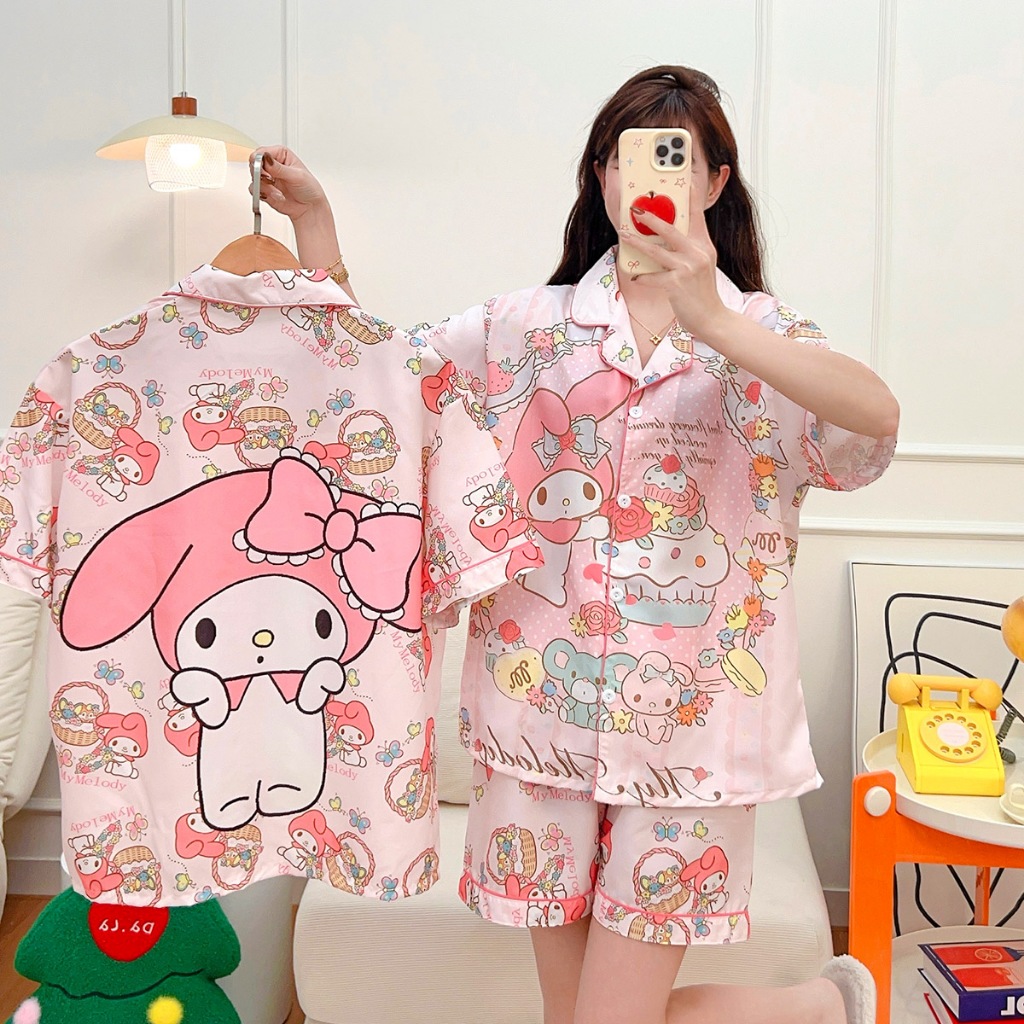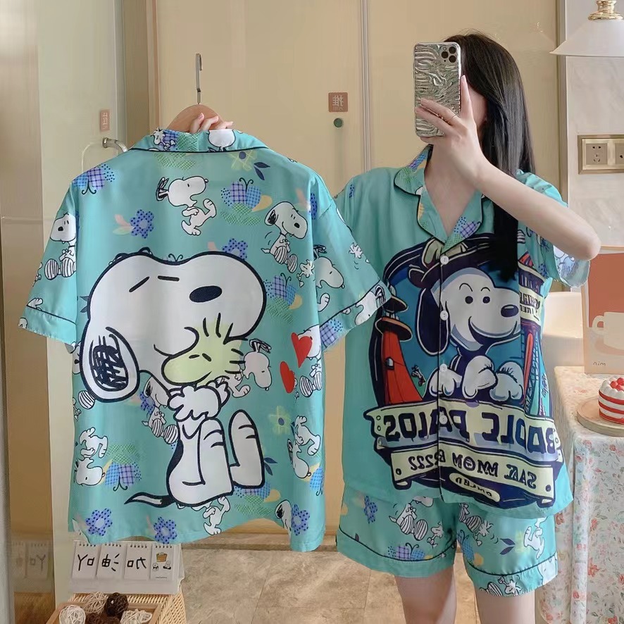 ชุดนอนคอปก ชุดนอนผู้หญิง แขนสั้นขาสั้น ผ้าไม่บาง การ์ตูน น่ารัก ML