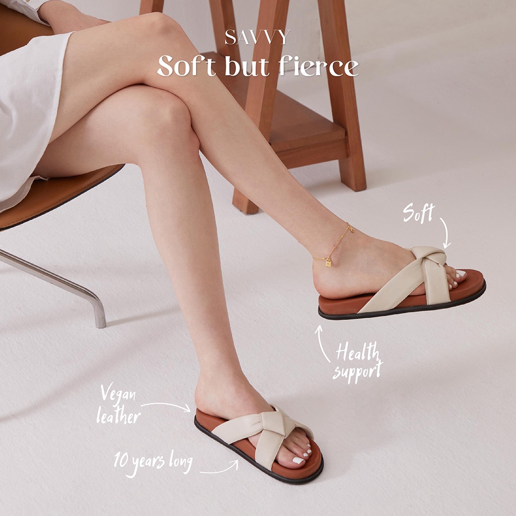 Savvy.bkk Modenecc - Twist รองเท้าผู้หญิง รองเท้าแตะมีส้น รองเท้าแตะแบบสวม รองเท้าแตะหนีบ รองเท้าแตะ รองเท้าสุขภาพ