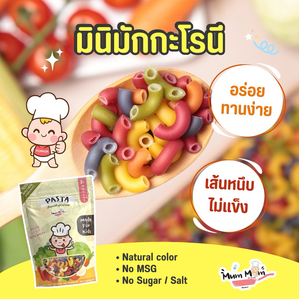 MUMMUM‼️เส้นพาสต้าสำหรับเด็กสูตรผสมผักรวม (มินิมักกะโรนี)