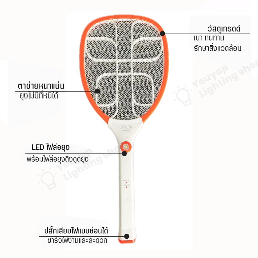 OTO-9777 ไม้ตียุง ไม้ตียุงไฟฟ้า ไม้ช็อตยุง ที่ตียุง ขาเสียบชาร์จในตัว (คละสี) ไฟฟ้า คุณภาพสูง ไม้ช็อตยุงพร้อมไฟฉายLED