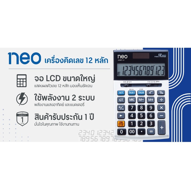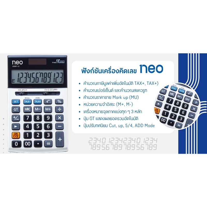 NEO เครื่องคิดเลข 12 หลัก 2206T-12 สีเทา