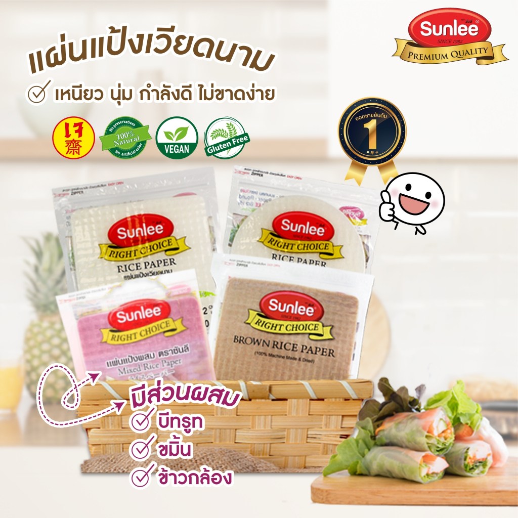 [แพ็ค 3 ชิ้น] ซันลี แผ่นแป้งข้าวกล้องกลม 340 กรัม Brown Rice Paper (Round) (Sunlee Brand) 340 g