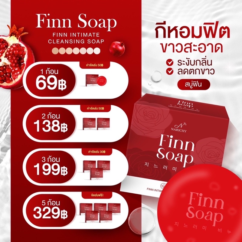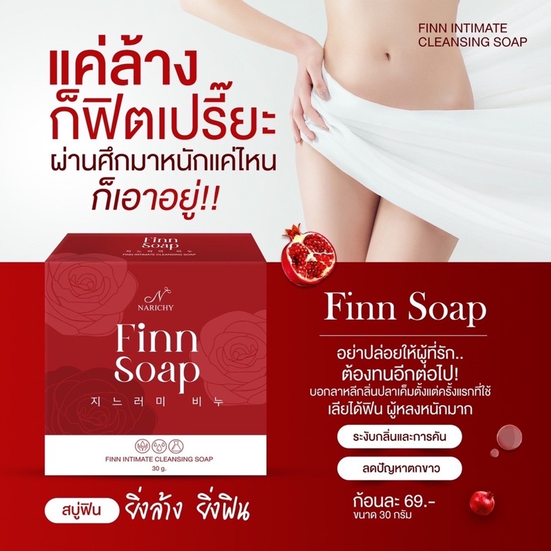 NARICHY FINN SOAP สบู่ฟิน สบู่อนามัยสำหรับจุดซ่อนเร้น เพิ่มความฟิต กระชับ หอม ขาว ลดกลิ่นเหม็นอับ ลดตกขาว สูตรอ่อนโยน