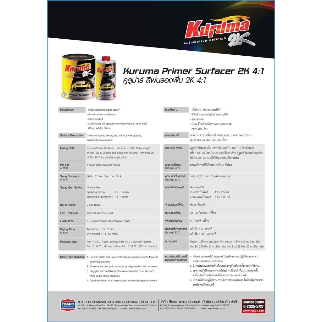 (ขนาดเล็ก) สีพ่นรองพื้น 2K 4:1 สีเทา KURUMA 2K คูลูม่าร์ สีรองพื้นเกาะเหล็ก สีเทา ขนาด A+B bonus