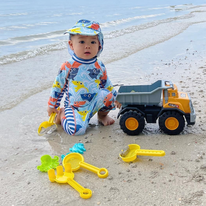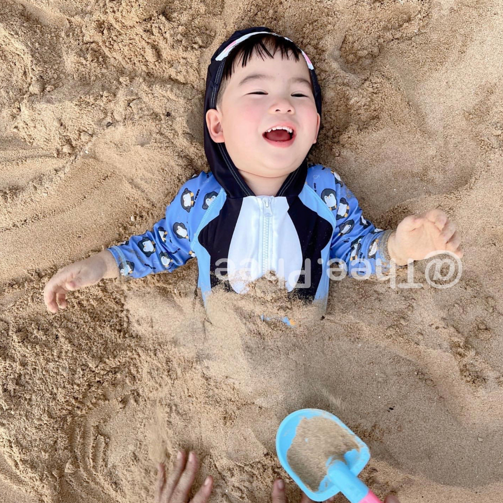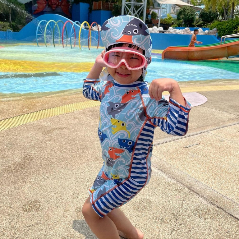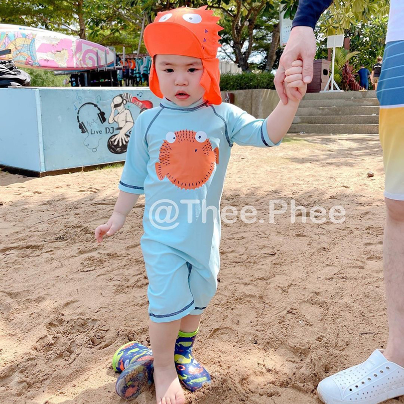 ชุดว่ายน้ำเด็ก ชุดว่ายน้ำเด็กกันแดด ชุดว่ายน้ำกันยูวี UPF 50 ชุดว่ายน้ำพร้อมหมวก Baby swimming suit