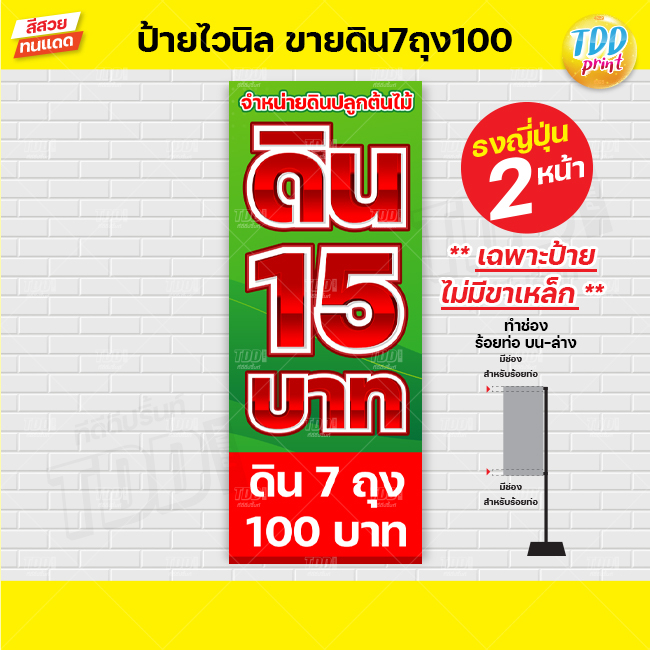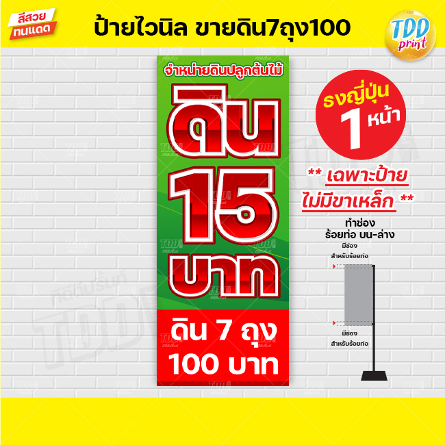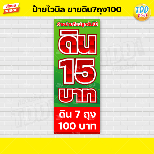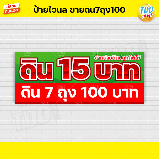 ป้ายไวนิลขายดิน7ถุง100บาทV1 ป้ายทนแดด กันน้ำ ภาพคมชัด สีสวยสดใส พร้อมใช้งาน