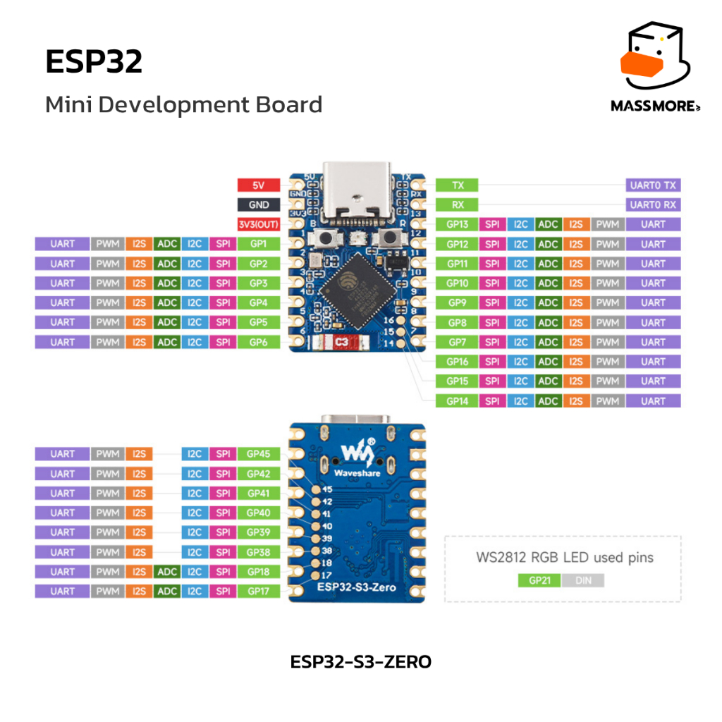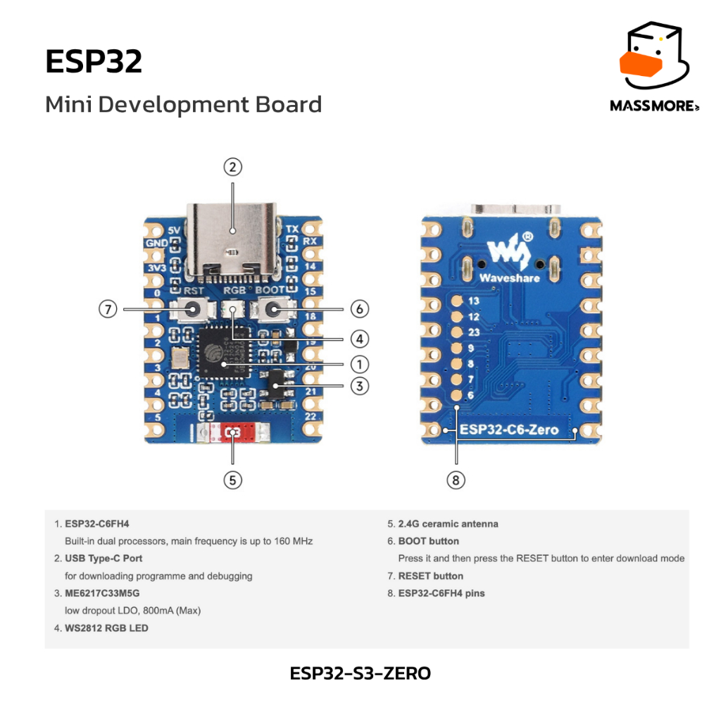 บอร์ดพัฒนา ESP32-S3-Zero ESP32-C6-Zero Mini Development Board Home Assistant Waveshare