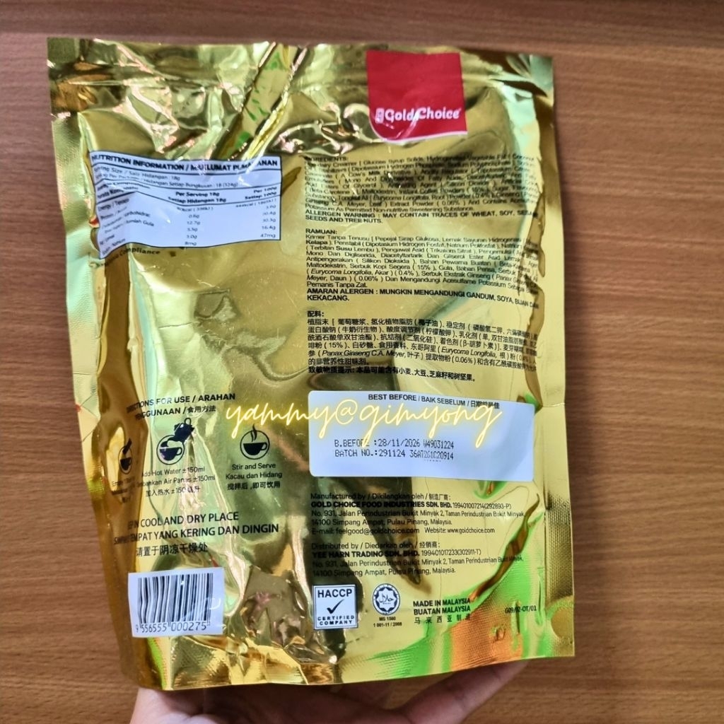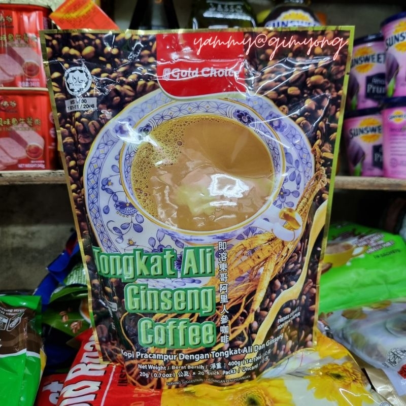 Gold Choice TONGKAT ALI GINSENG COFFEE กาแฟโสม กาแฟผสมโสม 1 ห่อ บรรจุ 18 ซอง