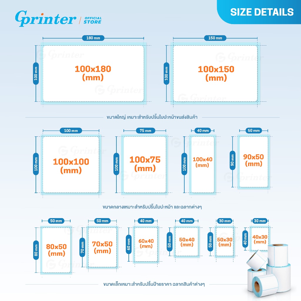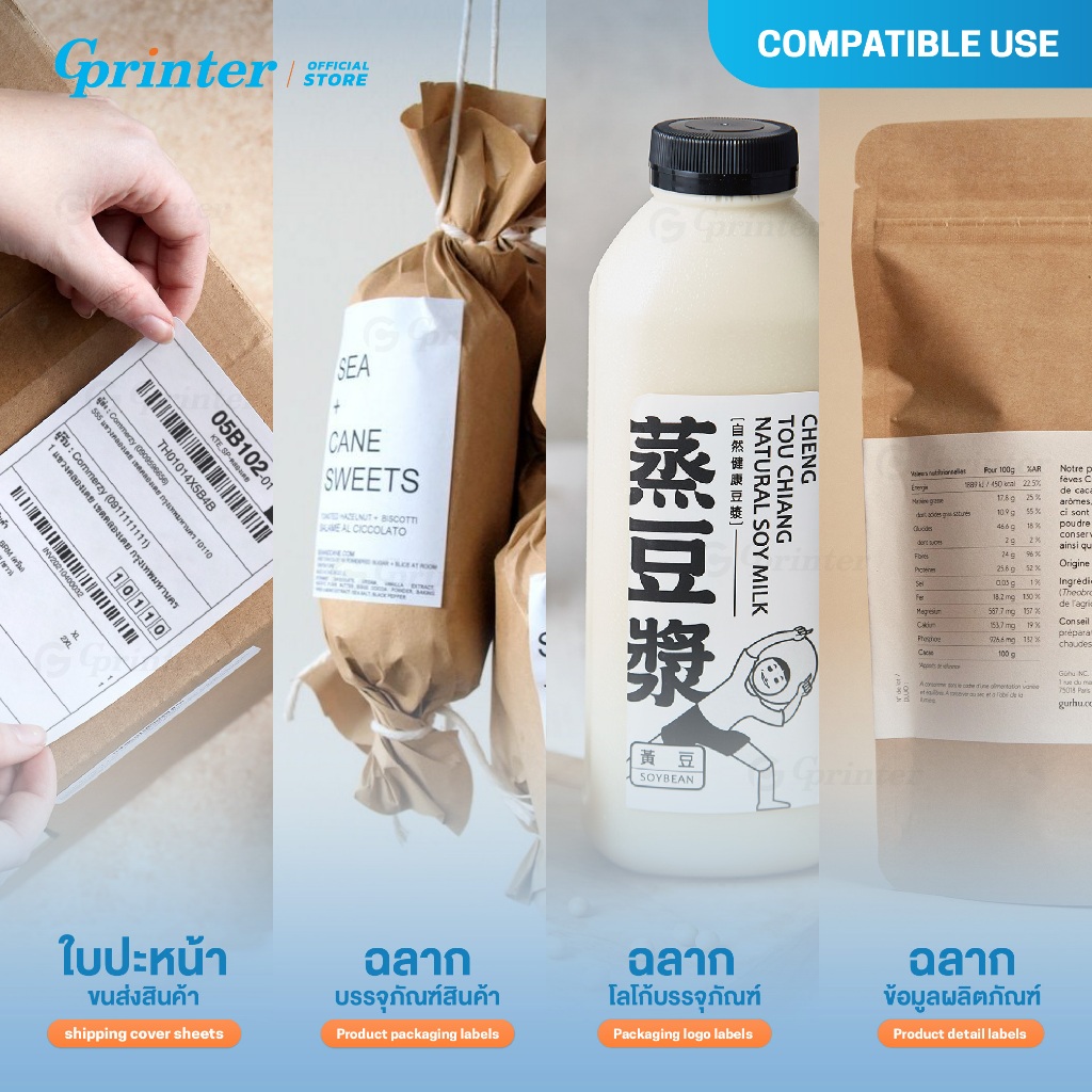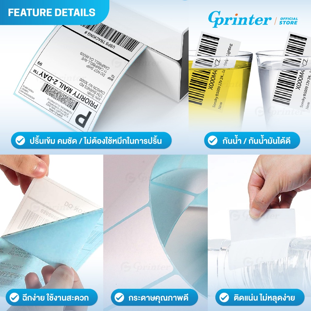 Gprinter กระดาษสติ๊กเกอร์ความร้อน ฉลากสินค้า บาร์โค้ด 80x50 60x40 90x50 label sticker ใบปะหน้า