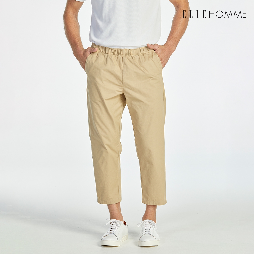ELLE HOMME | กางเกงขายาวห้าส่วนเอวยางยืด กระเป๋าล้วง 2 ข้าง สีเบจ | W8Q001