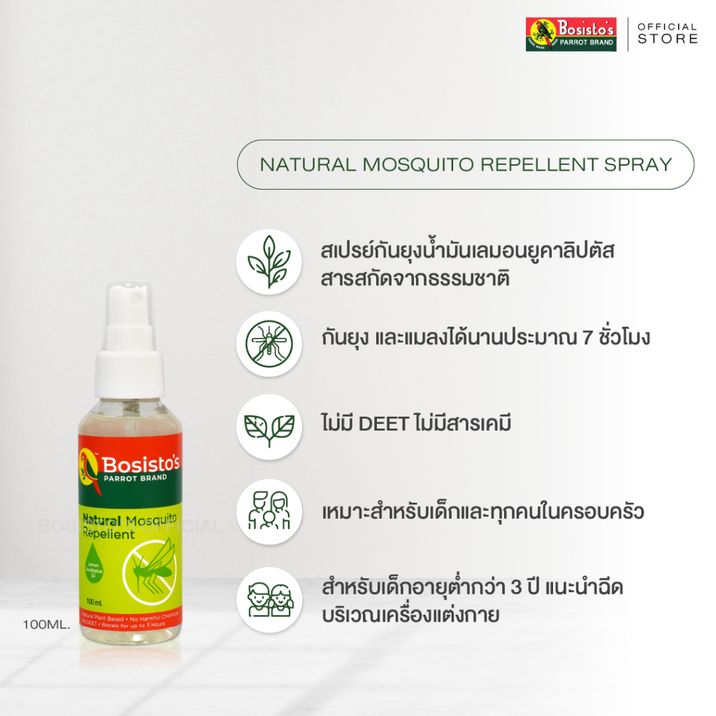 Bosisto ตรานกแก้ว สเปรย์กันยุงธรรมชาติ 100 ml. (Bosisto's Natural Mosquito Repellent) แพ็คx2