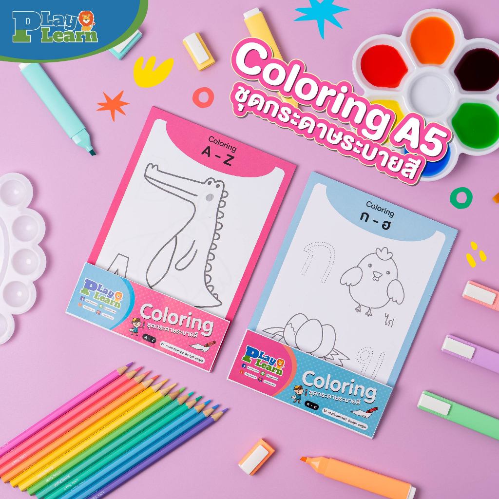 Play Plearn Kid ชุดกระดาษระบายสี A-Z, ก-ฮ Coloring เหมาะสำหรับเด็ก 2 ขวบขึ้นไป