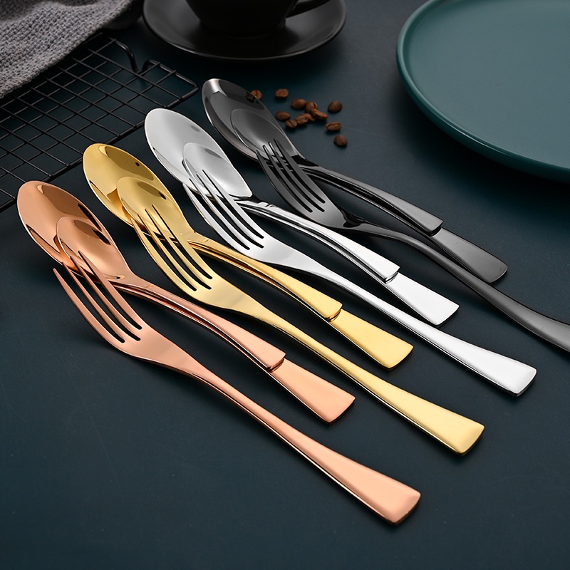 ชุดช้อน ส้อม มีดสเต็ก สเตนเลส โลหะ คุณภาพสูง หลายสี