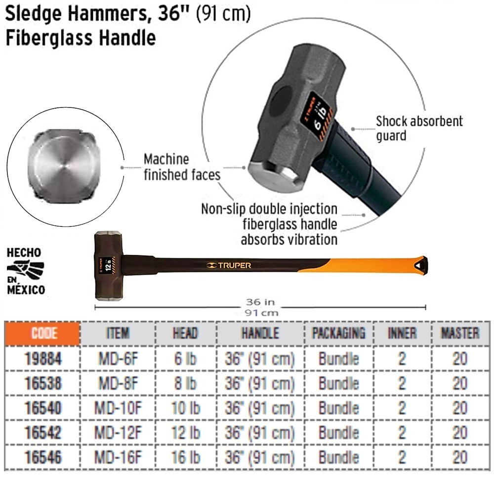 TRUPER 16542 ค้อนปอนด์ 12 ปอนด์ด้ามไฟเบอร์กลาสยาว 36 นิ้ว (MD-12F) | SKI OFFICIAL